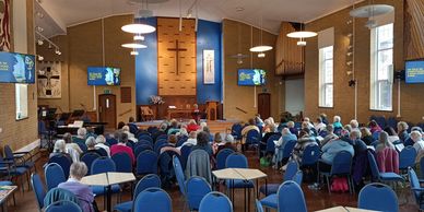 Hire our Church, Allan Fletcher Hall or other smaller rooms (not shown) for your event. The main church with its AV setup is ideal for conferences and business events. To request a booking, or for more information, please click "Make an Enquiry" below.