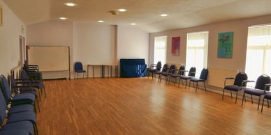 With space for up to 40 seated and 50+ standing, hire of the Allan Fletcher Hall includes the kitchen. Toilets with disabled access are directly outside the hall. It is ideal for smaller parties, community group meetings, or as a rehearsal space for drama and music. There is a built-in media player too.